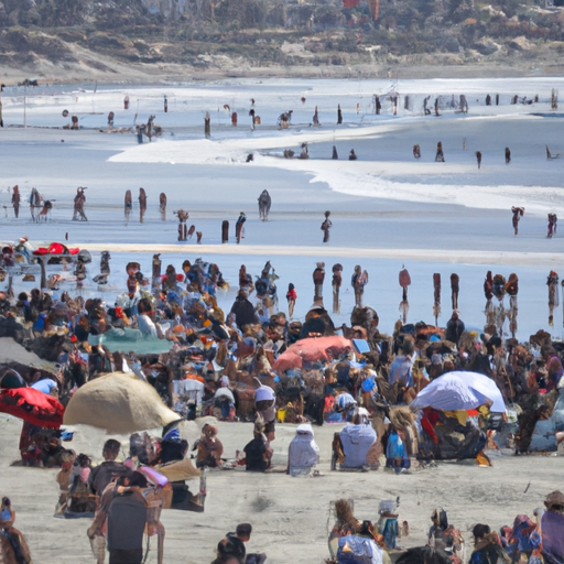 המונים נהנים מיום שמשי בחוף סן דייגו