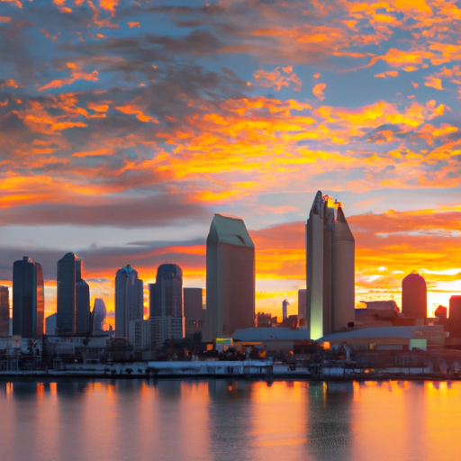 נוף פנורמי של קו הרקיע של סן דייגו עם שקיעה חורפית יפה